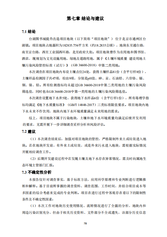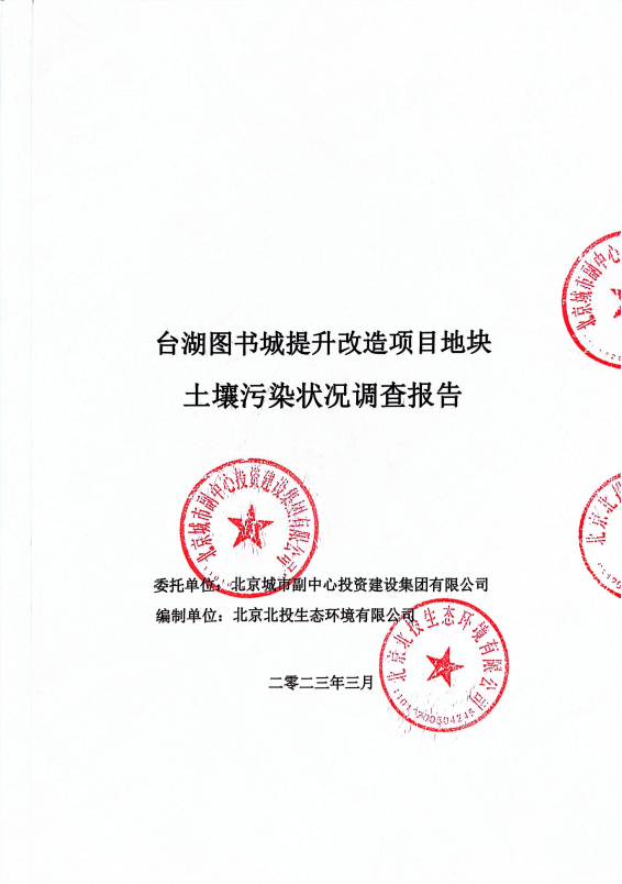 北京城市副中心投資建設(shè)集團(tuán)有限公司根據(jù)《中華人民共和國(guó)土壤污染防治法》、《污染地塊土壤環(huán)境管理辦法(試行)》(部令第42號(hào))等相關(guān)法律法規(guī)要求,委托北京北投生態(tài)環(huán)境有限公司在充分搜集場(chǎng)地歷史及場(chǎng)地環(huán)境相關(guān)資料的基礎(chǔ)上,通過現(xiàn)場(chǎng)踏勘、社會(huì)調(diào)查、勘察、采樣、檢測(cè)及相關(guān)分析等工作,編制完成了《臺(tái)湖圖書城提升改造項(xiàng)目地塊土壤污染狀況調(diào)查報(bào)告》。